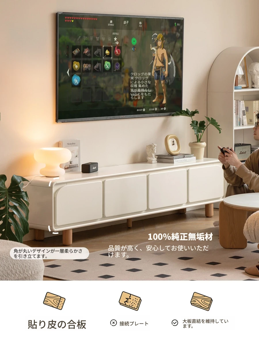 源氏木语プレミアム無垢材クリーム風ロックボードTVキャビネット - 限られたスペースにもぴったりの小型リビング用ホワイト収納家具!スタイリッシュで機能的なデザインで、あなたの生活空間を一新します。