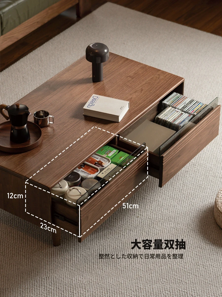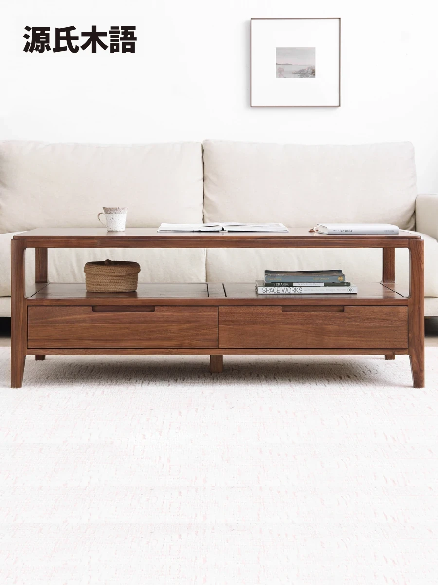 源氏木语 モダンシンプルな無垢材コーヒーテーブル - ブラックウォールナット製、コンパクトなリビング向け、移動可能な家庭用ティーテーブルで、様々なスタイルに最適です!