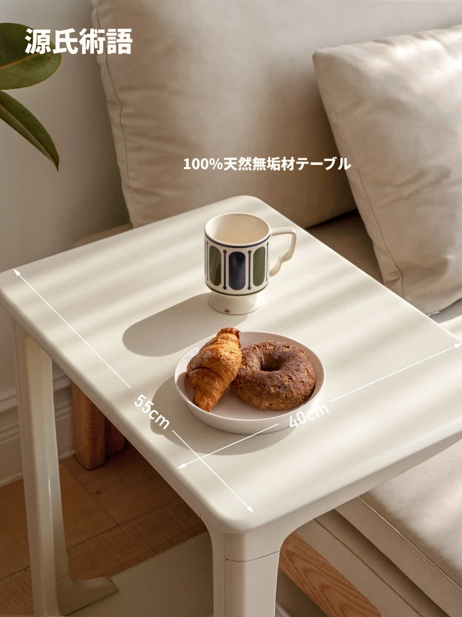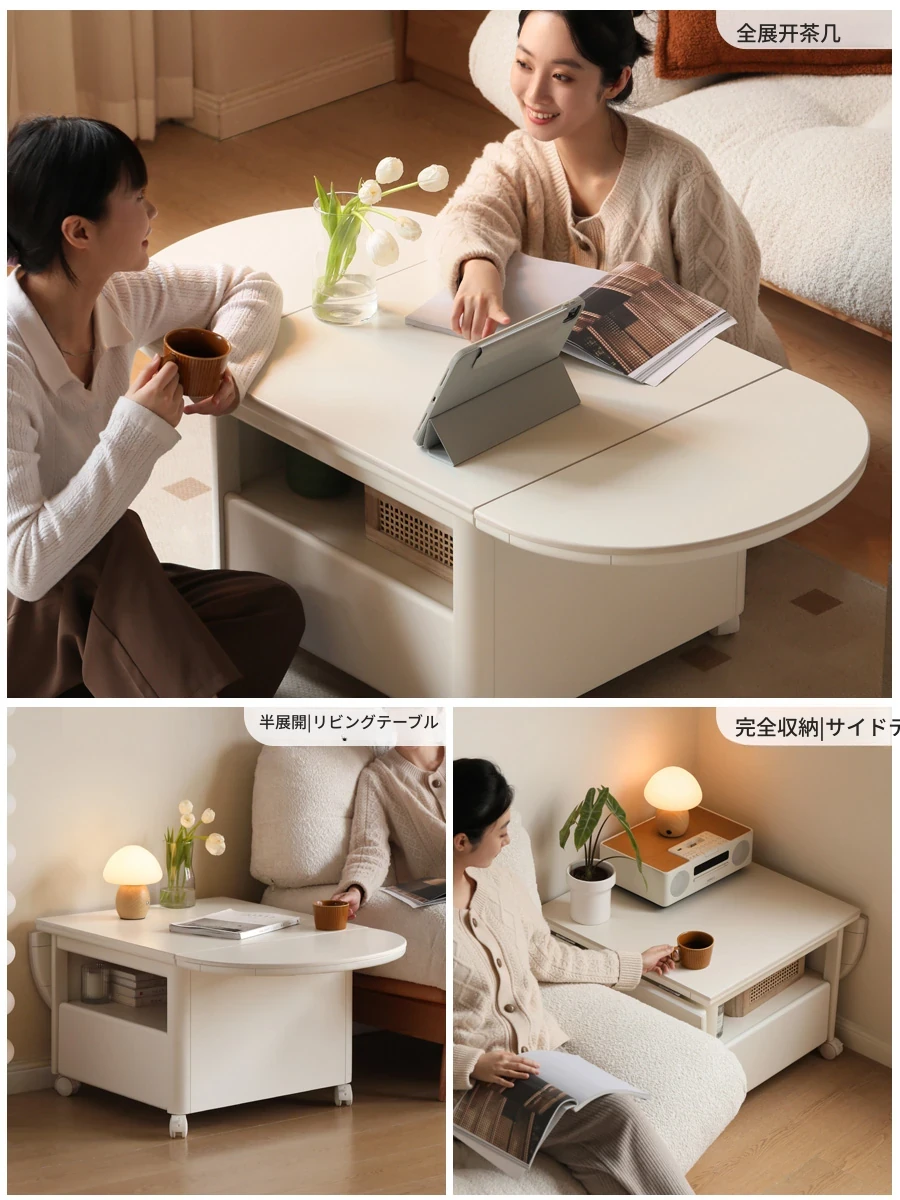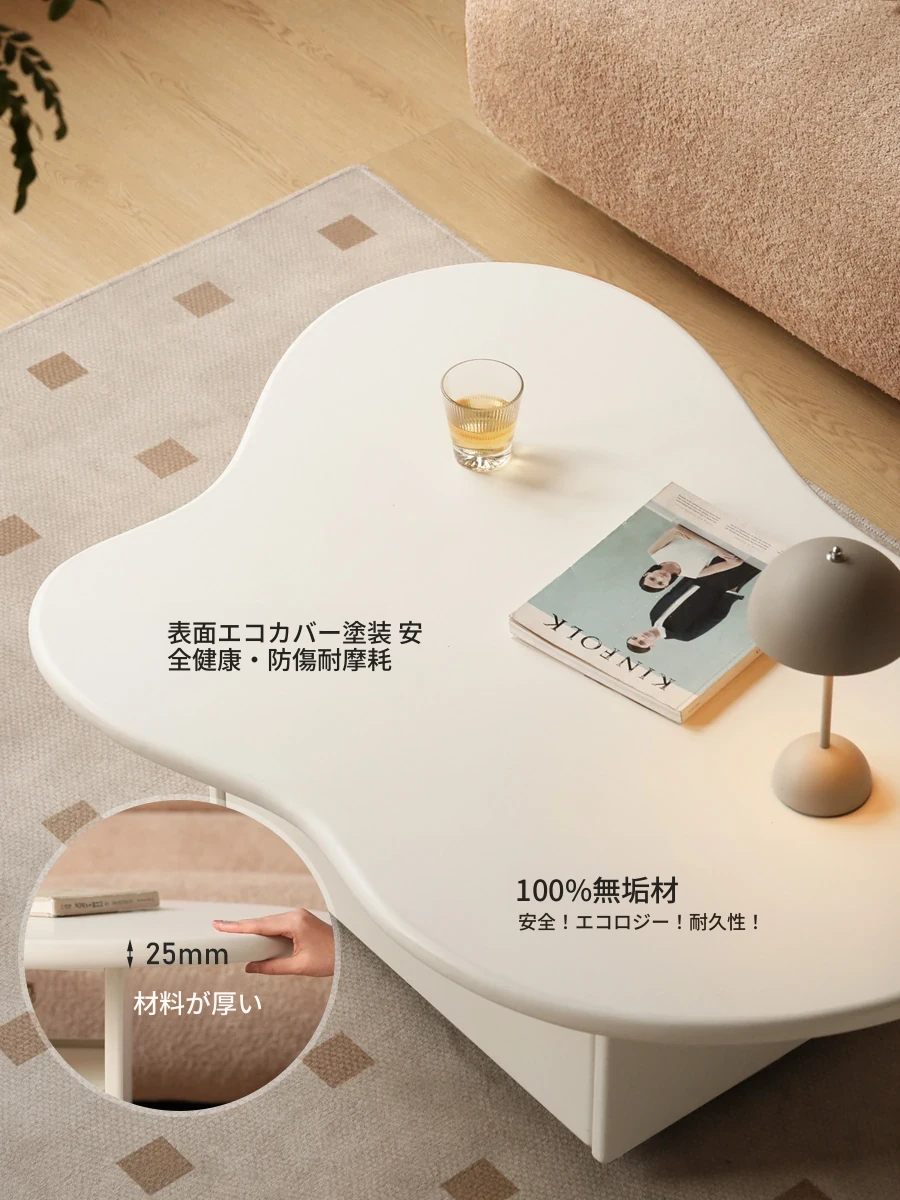 源氏木語の無垢材クラウド型リビングテーブル - おしゃれで便利なスリムデザイン、クリームカラーが美しい!ご家庭にぴったりなモダンは移動式コーヒーテーブルです。