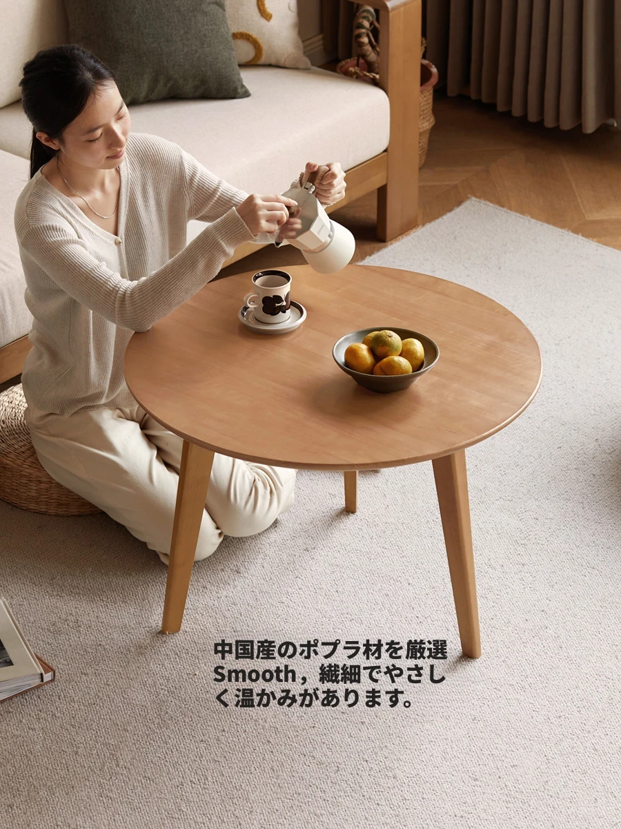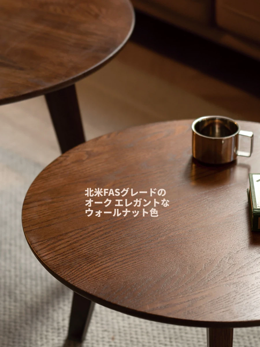 源氏木语の純正無垢材使用!洗練されたデザインの丸型コーヒーテーブル - ソファ横に最適なコンパクト&スタイリッシュ。小さなリビングにもぴったりのナチュラルウッドで、心安らぐ空間を演出!