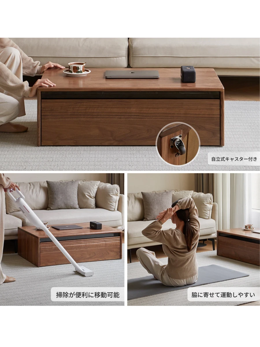 源氏木語 無垢材質の昇降式コーヒーテーブル - おしゃれで移動も簡単、黒色の円形デザイン!リビングや小さなスペースにもぴったりなダイニングテーブル、ソファサイドテーブルとしても大活躍!
