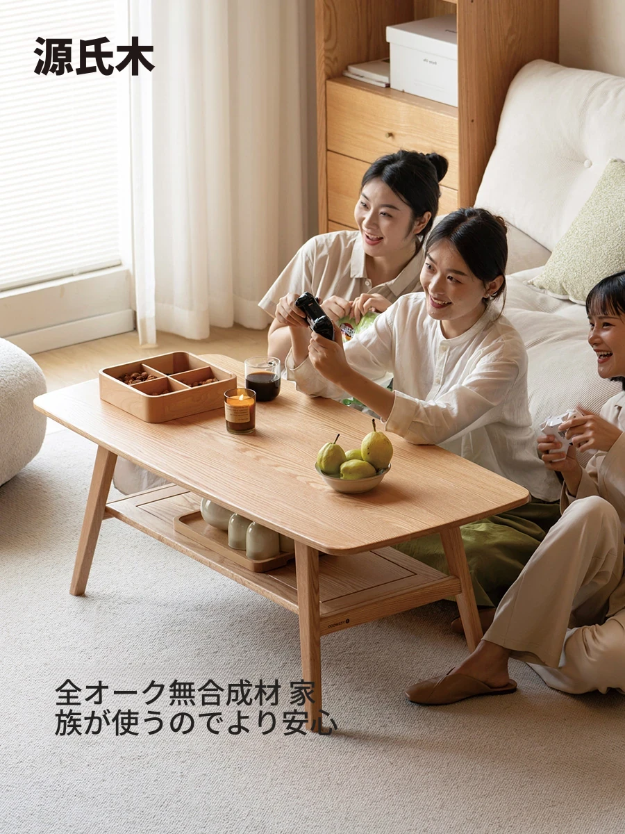 源氏木语 北欧デザイン無垢オーク材コーヒーテーブル シンプルでおしゃれなリビング向け 家庭用ティーテーブル 小スペースにも最適な天然木家具