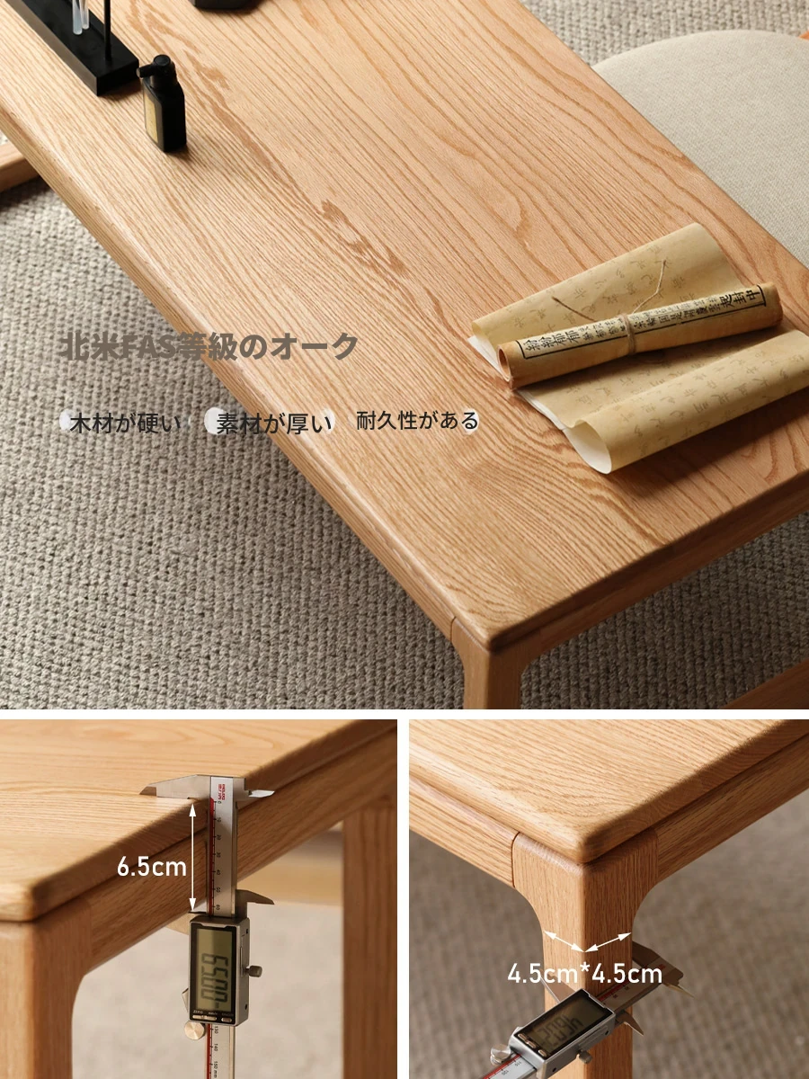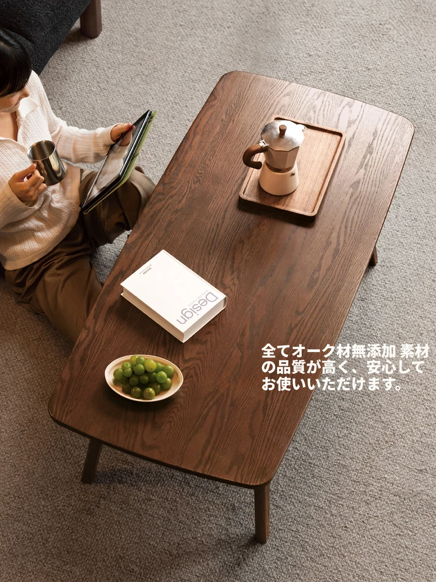 源氏木語の無垢材ティーテーブル - おしゃれなリビングにぴったりなオーク材の小型和風コーヒーテーブル!スリムデザインで省スペース、シンプルな美しさを持つ一品。