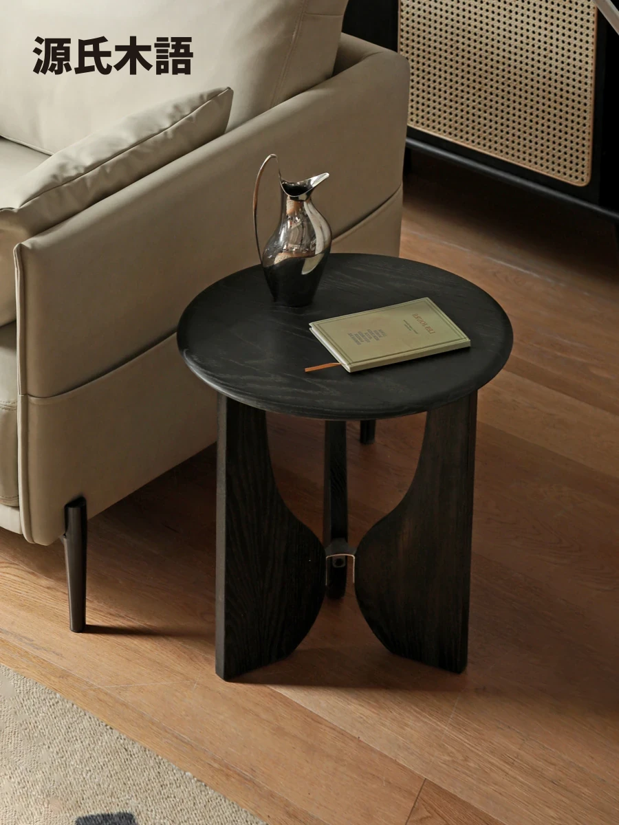 源氏木语の実木サイドテーブル|モダンでシンプルなデザイン|ブラックの小さなティーテーブル|北欧スタイルのコンパクトなリビングコーナーテーブル|おしゃれで機能的なスペース作りに最適!