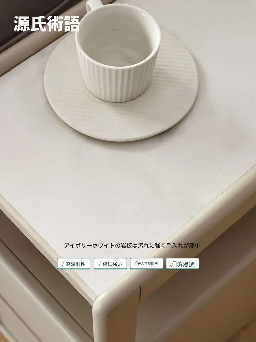 源氏木语のモダンミニマリストサイドテーブル - 洗練されたデザインで小さなリビングやベッドサイドに最適!岩板仕上げで耐久性も抜群、バルコニーやコーナーにもピッタリの収納スペースを提供します。