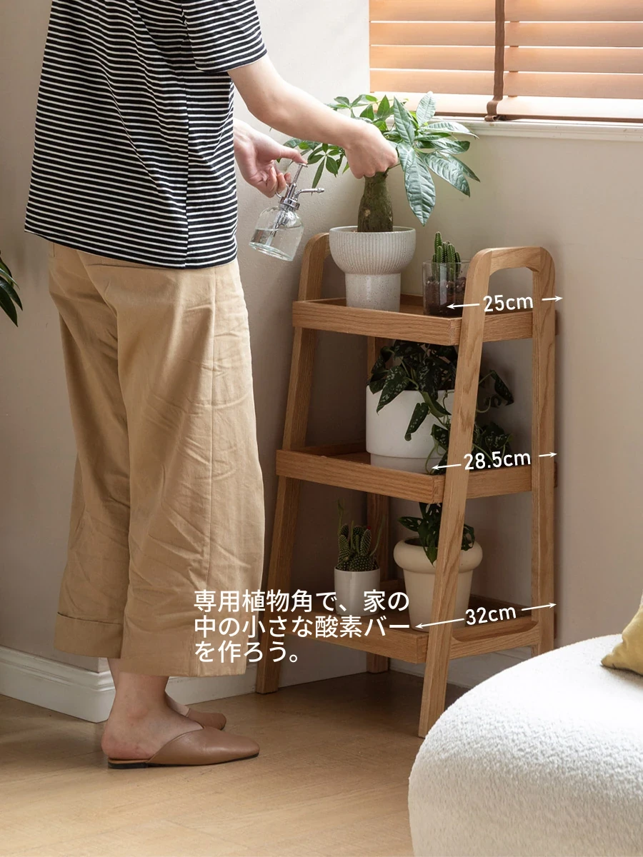 源氏木语 植物木製サイドボード ソファサイドテーブル お洒落なバルコニー収納ラック フロア書棚 北欧スタイルのリビングルームコーナーテーブルで、洗練された空間を演出!