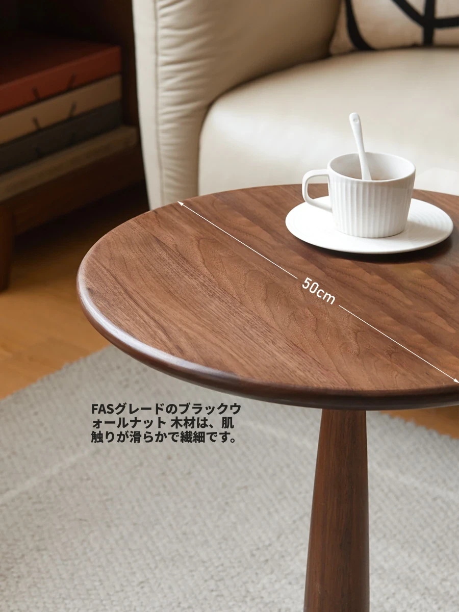 源氏木語 本格的な無垢材製 ブラックウォールナット サイドテーブル 小型ラウンドテーブル リビングルーム ソファ横テーブル コンパクトデザイン ベッドサイドに最適