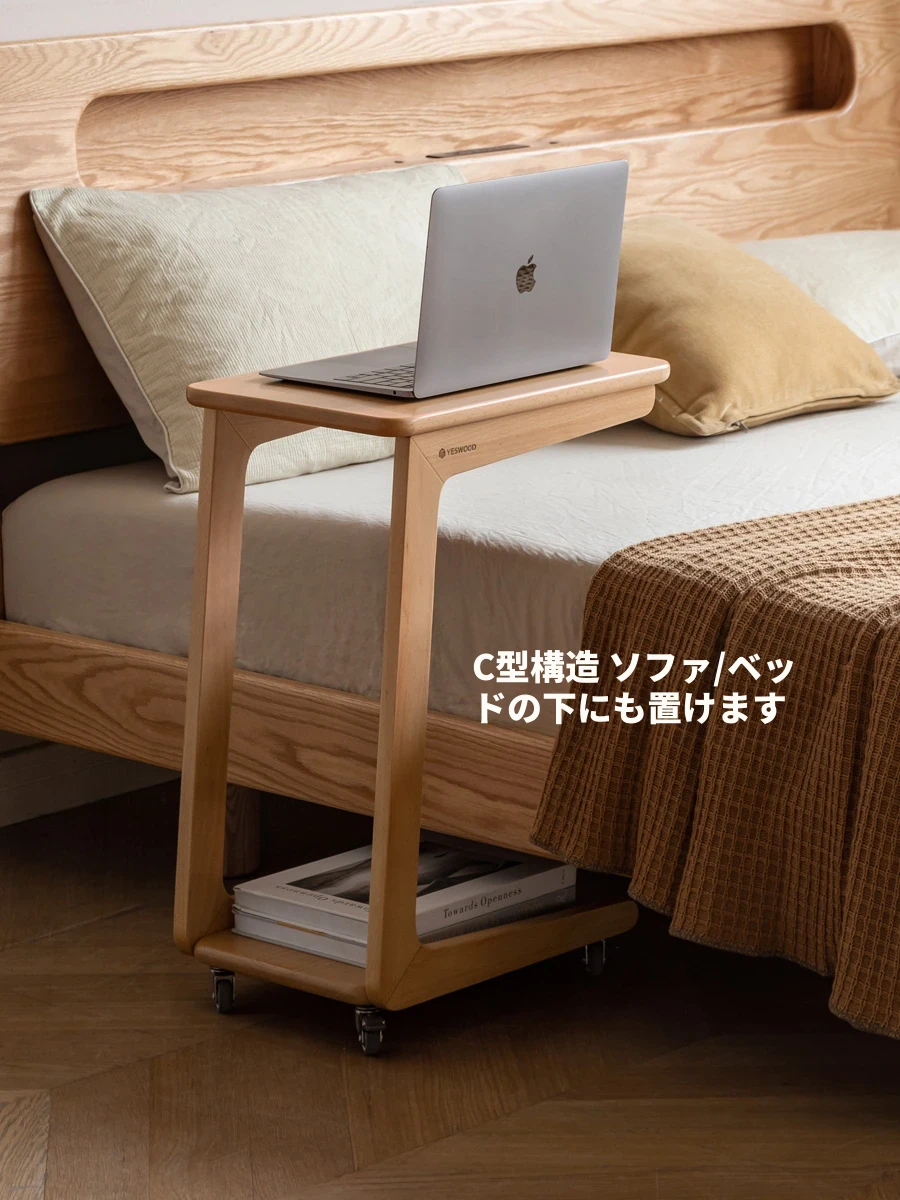 源氏木語の無垢材 C型サイドテーブル - モダンでシンプル、リビングに最適!小型住宅にもぴったりな移動可能なティーテーブルで、ソファの脇に置けば使い勝手抜群。美しいデザインでお部屋をグレードアップ!