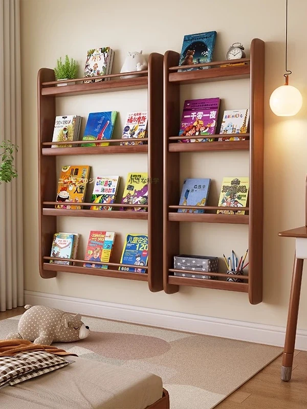 "Wall-Mounted Solid Wood Children's Picture Book Shelf - Multi-Tiered Storage Rack for Nurseries and Classrooms, Perfect for Organizing and Displaying Books for Young Readers"