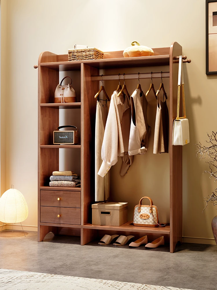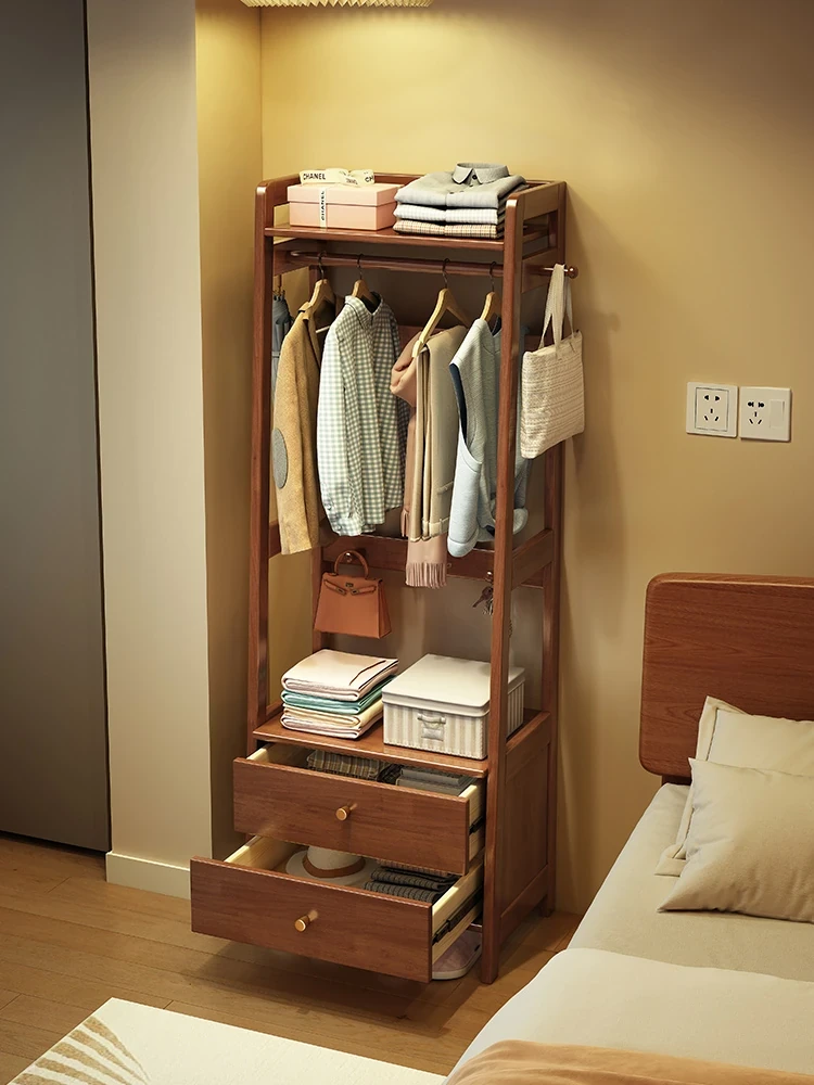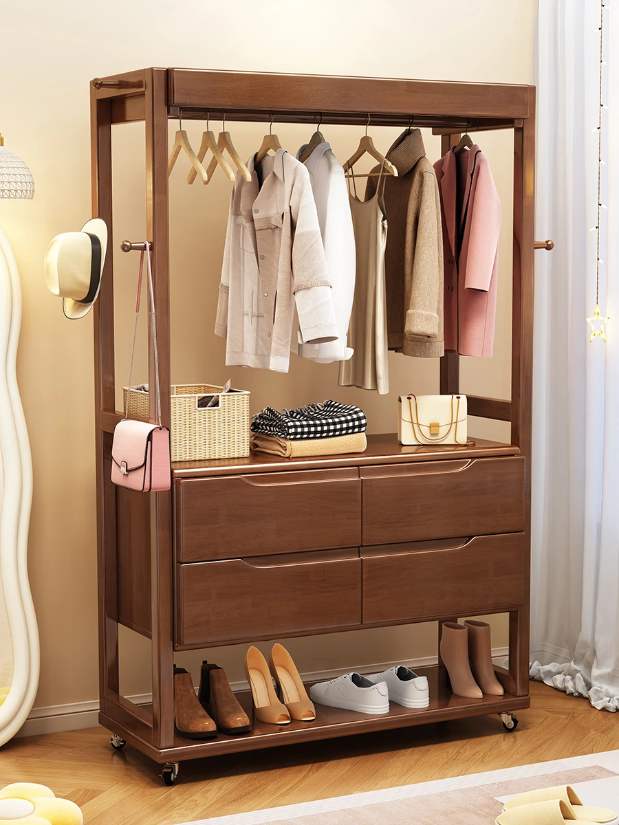 Multi-Functional Solid Wood Free-Standing Coat Rack with Drawer - Stylish & Practical Wardrobe Organizer for Home Use, Perfect for Bedrooms and Entryways
