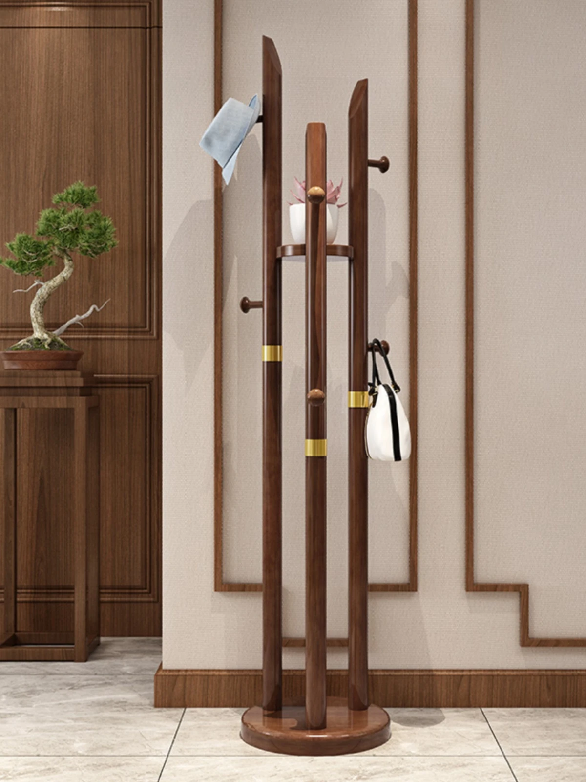 Elegant Solid Wood Coat Rack – Stylish Free-Standing Clothes Hanger for Bedroom and Living Room – New Chinese Style Luxury Clothing Organizer for Home Use