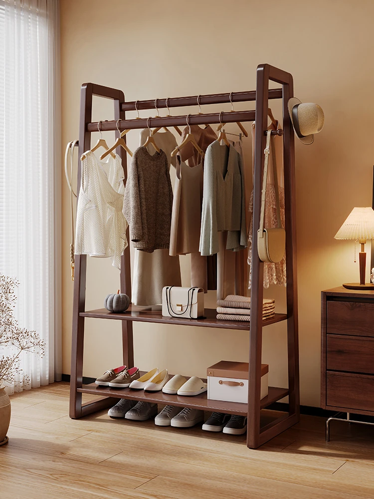 “Modern Minimalist Solid Wood Freestanding Clothes Rack – Stylish Bedroom Coat Stand and Multi-Functional Storage Solution for Home”