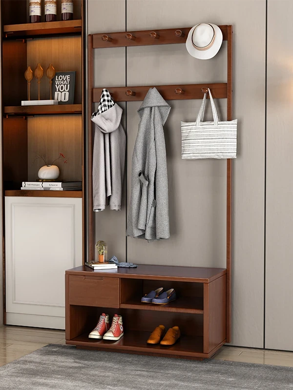 Solid Wood Entryway Coat Rack and Shoe Organizer - Versatile Stand for Bedroom or Hallway, Large Capacity for Clothes and Accessories Storage, Stylish and Functional Home Solution
