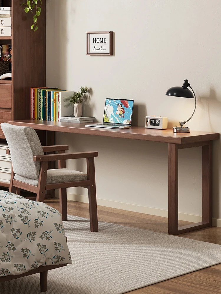 全実木製のスリムデスク|モダンでシンプルなデザイン|学生向け|厚さアップの学習デスク|幅40CM|壁際にぴったりなロングテーブル|快適な学習環境を提供!