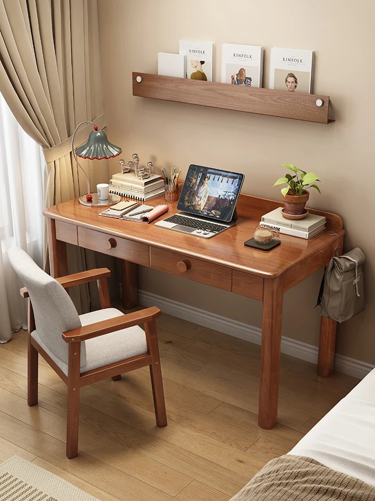 シンプルでスタイリッシュな無垢材デスク|小スペースに最適!学生・子供向け学習机|おしゃれな寝室用ワークスペース|快適なPCデスクセット