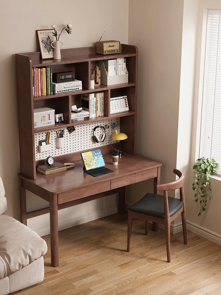 高品質の無垢材製デスク&書棚一体型、スタイリッシュなパソコンデスク。寝室やベッドサイドに最適。中学生の勉強にぴったりな家庭用デスクで、快適な学習環境をサポート!