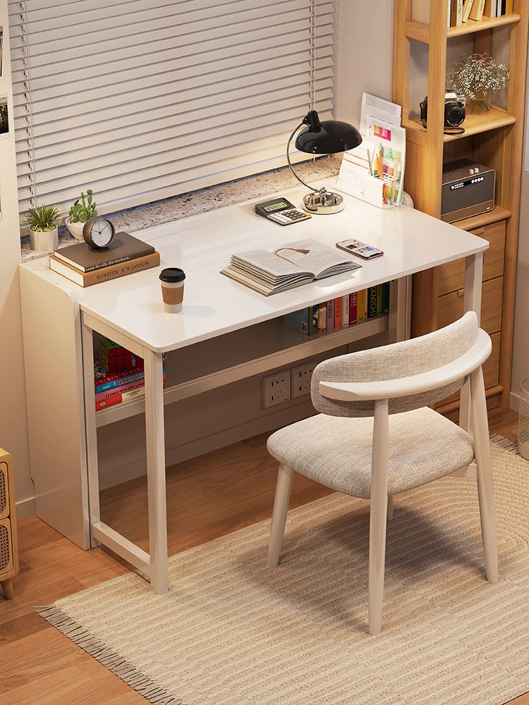 クリーム風味の全木製折りたたみデスク - スリムで拡張可能な学習デスク!小スペースでも活躍するシンプルなコンピューターデスク、ベッドルームでの学習にも最適です。