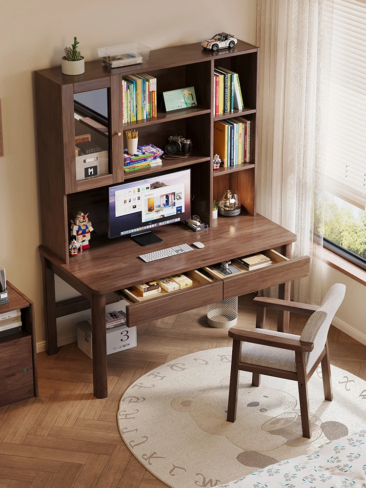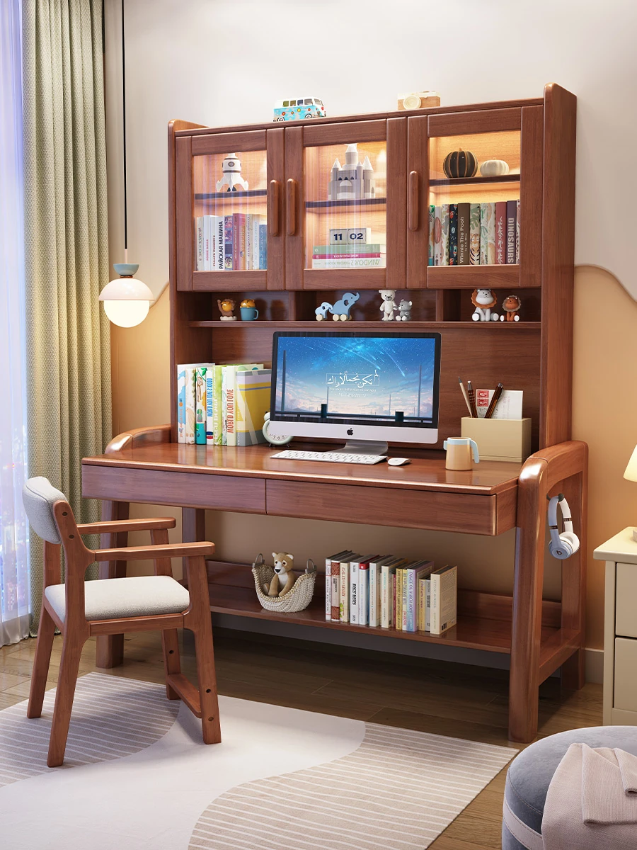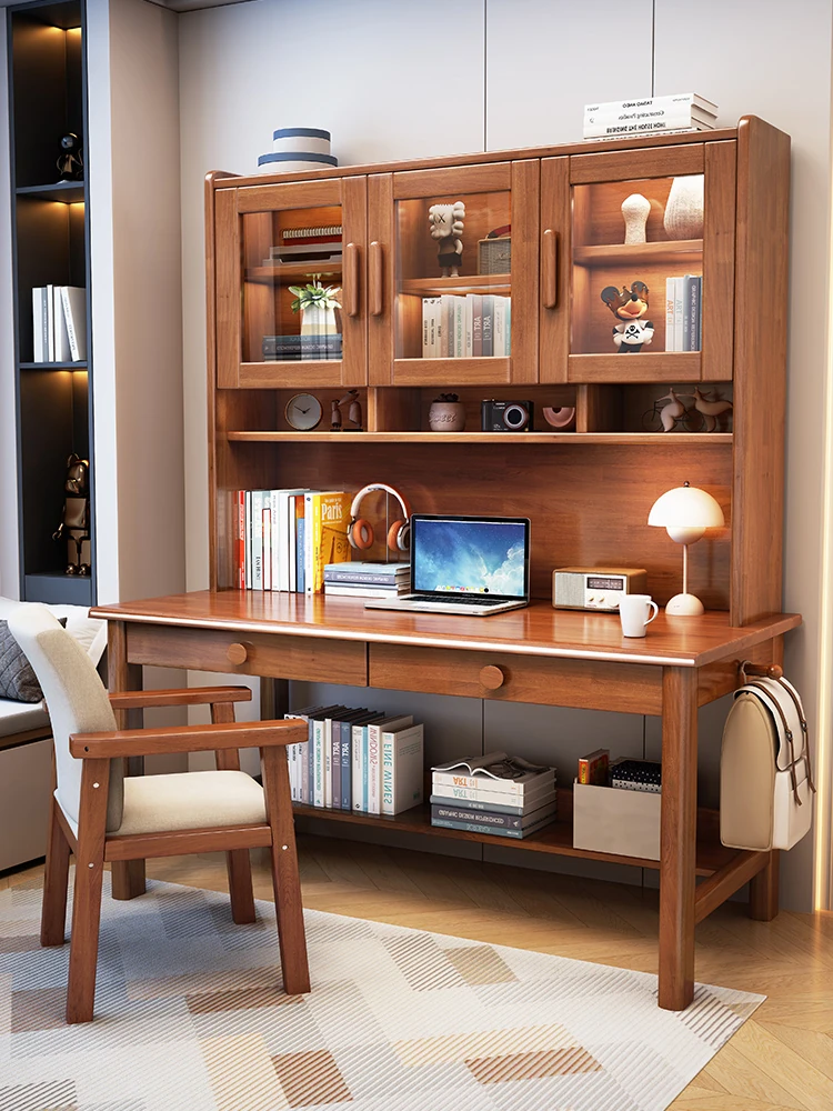 全木製デスク&ブックシェルフ一体型 家庭用デスク 学生のための学習スペースに最適! スタイリッシュなデザインで、機能性も抜群のコンビネーション。快適な学びをサポートします!