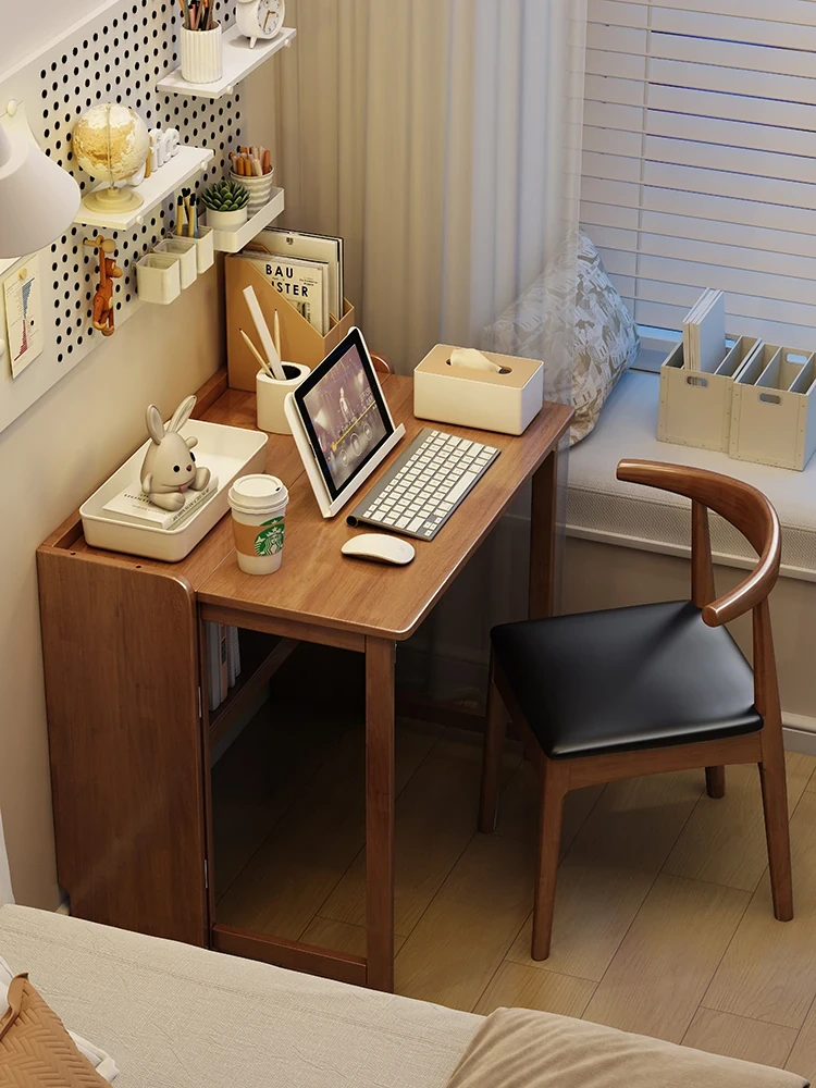 全実木折りたたみデスク|使い勝手抜群の伸縮式パソコンデスク|学生や家庭用に最適|狭いスペースでも大活躍!ベッドサイドや簡易作業台にぴったり!