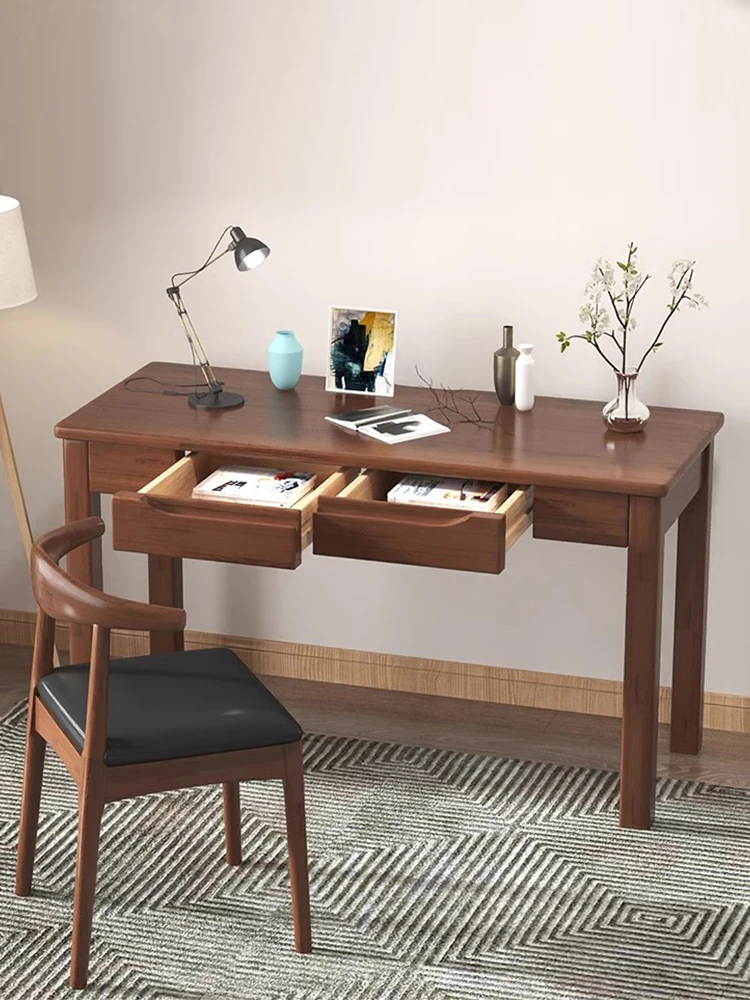 北欧スタイルの全木製書 desk、コンパクトな家用デザイン!小さなお部屋にもピッタリなシンプルなライティングデスク。学生の勉強やリモートワークに最適なスタイリッシュなデスクセット!