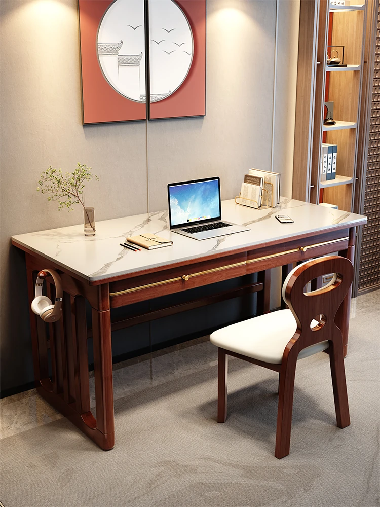 軽やかな高級感のある岩板デザイン!実木製のスタイリッシュなデスク。書斎や小スペースにぴったりな家庭用・オフィス用デスク。学生や社会人のための使いやすいワークスペースを提供!
