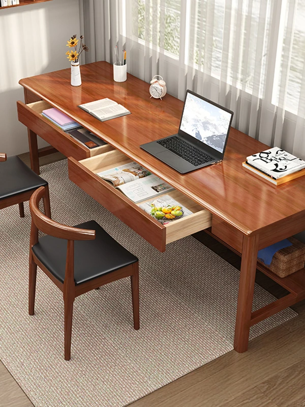 北欧スタイルの天然木製デスク|引き出し付き2人用ロングテーブル|家庭やオフィスに最適|シンプルでスタイリッシュな学生用学習デスク