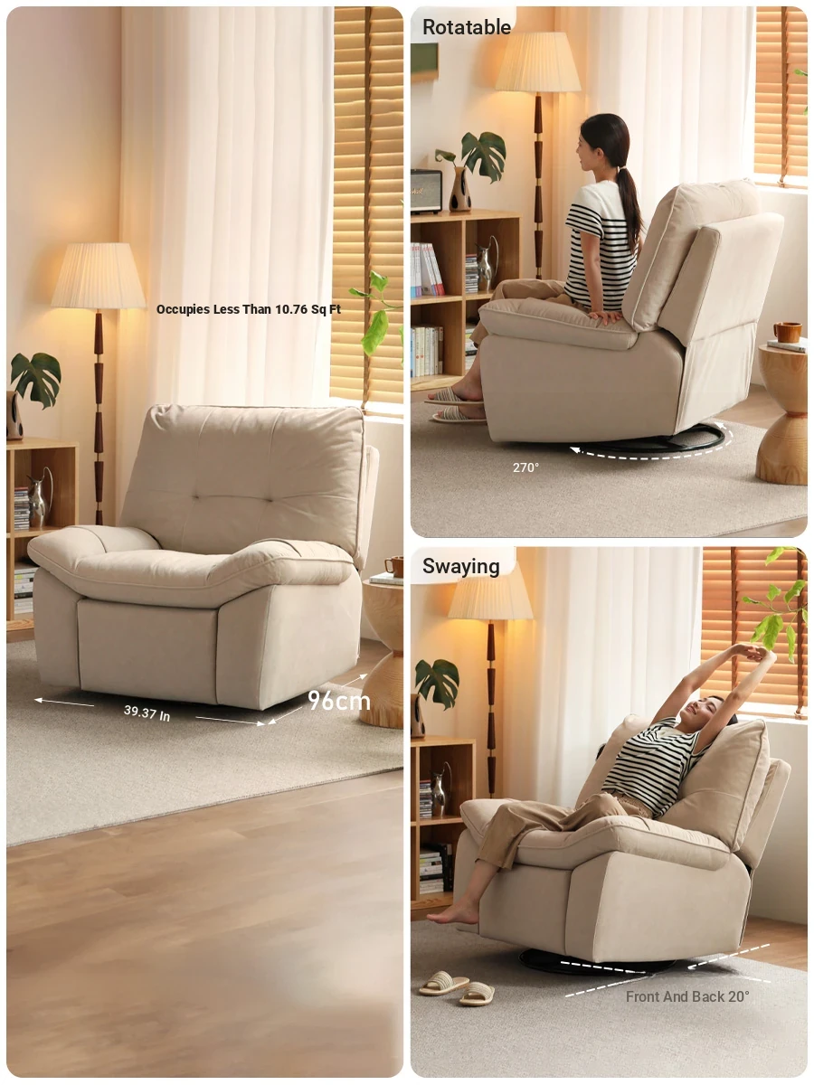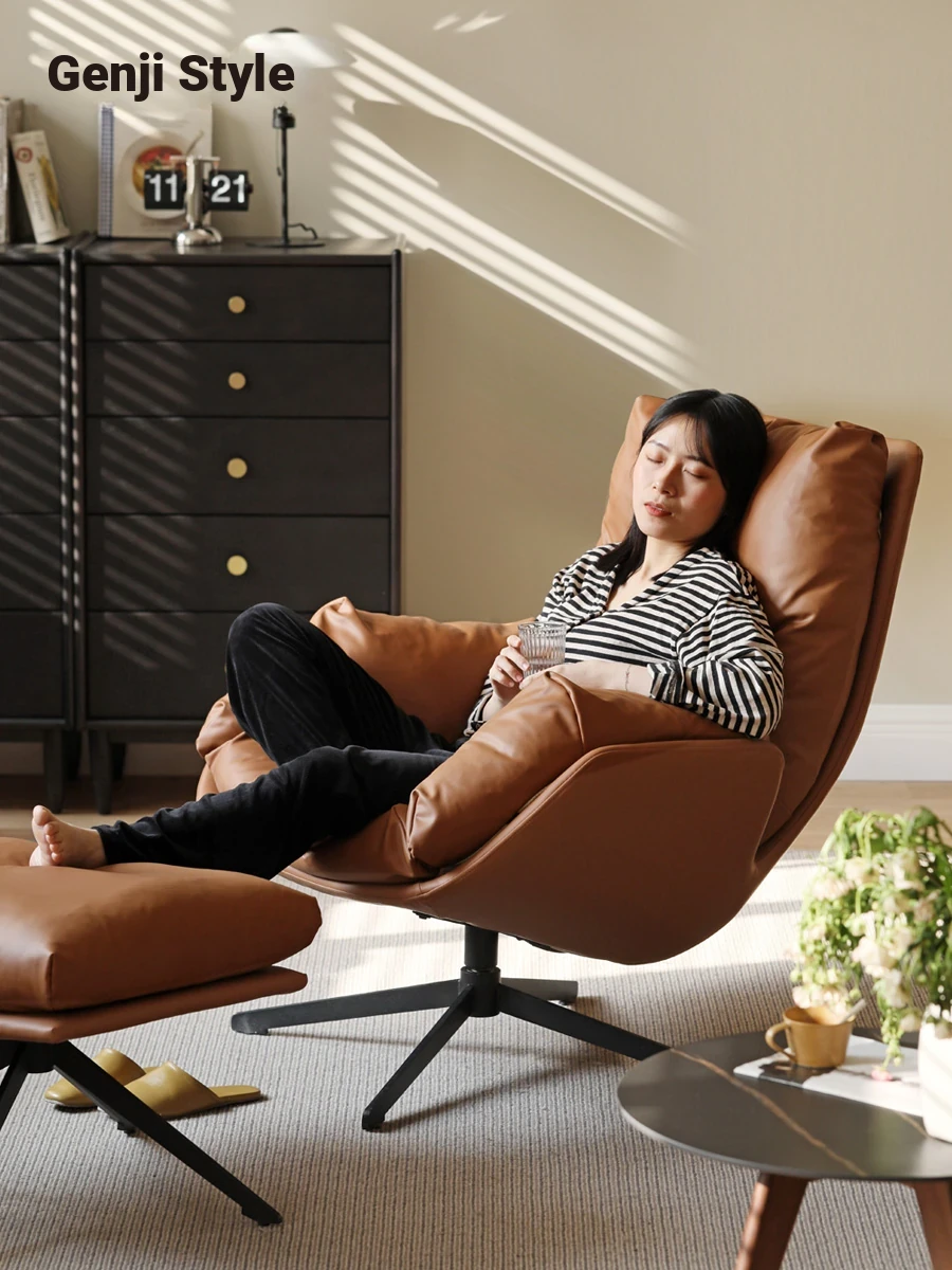 Genji Mu Yu Genuine Leather Swivel Armchair – Multifunctional Reclining Lounge Chair for Living Room, Perfect for Small Balconies and Cozy Spaces, Ideal for Relaxation and Comfort