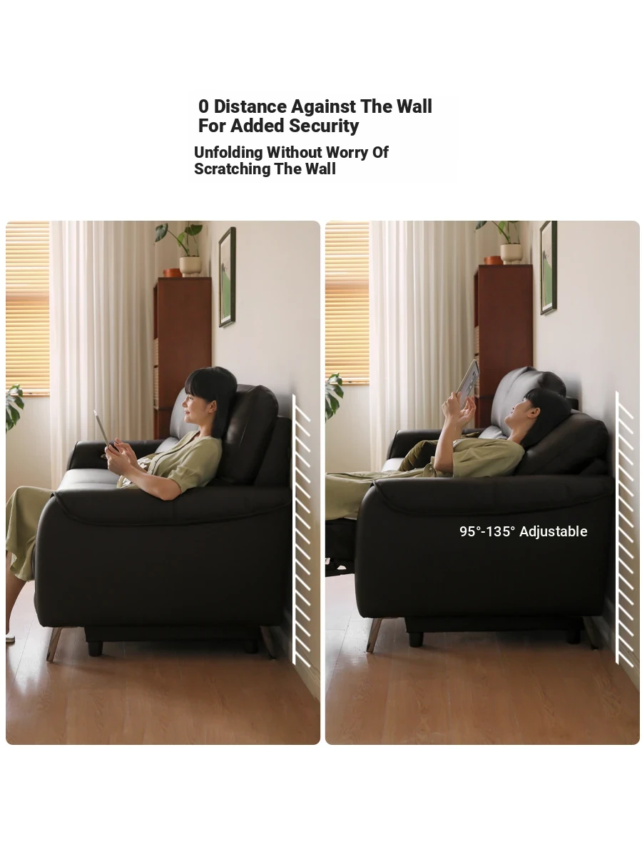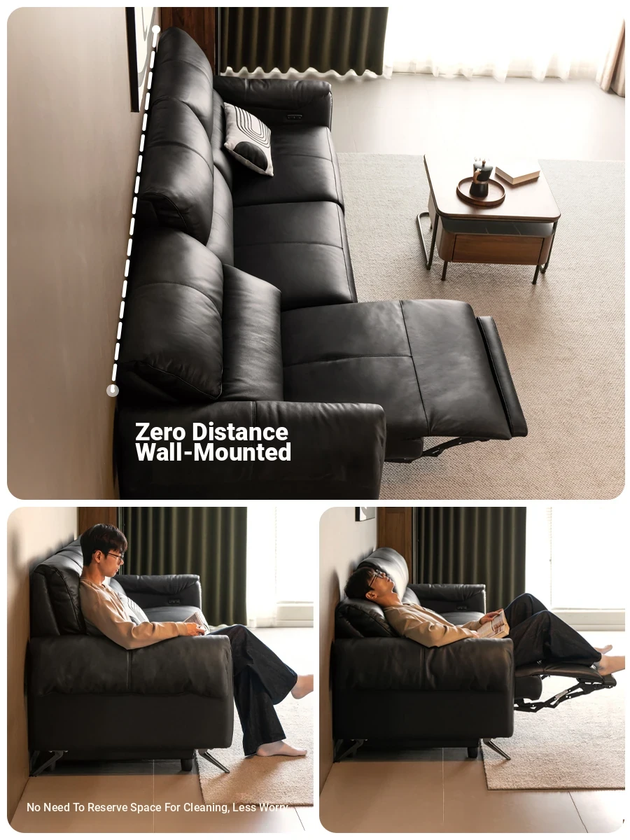 Genji MuYu Zero Wall Leather Sofa - Premium Top-Grain Cowhide, Black Multifunctional Electric Sofa for Living Room. Perfectly Blends Comfort and Style!