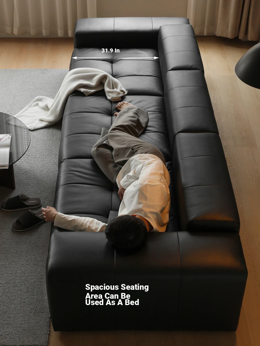 Genuine Leather Sofa by Genji Mu Yu - Top Grain Cowhide Minimalist Italian Style Pixel Modular Sofa for Living Room, Perfect for Home Comfort