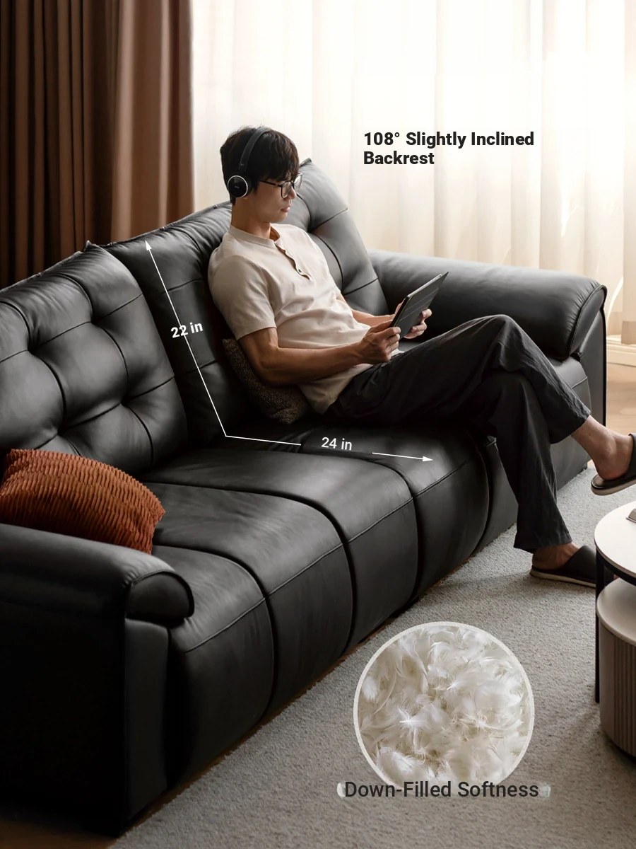 "Genji Mu Yu Modern Minimalist Genuine Leather Sofa – Versatile and Functional Electric Recliner for Living Room, Crafted from High-Quality Top Grain Cowhide"