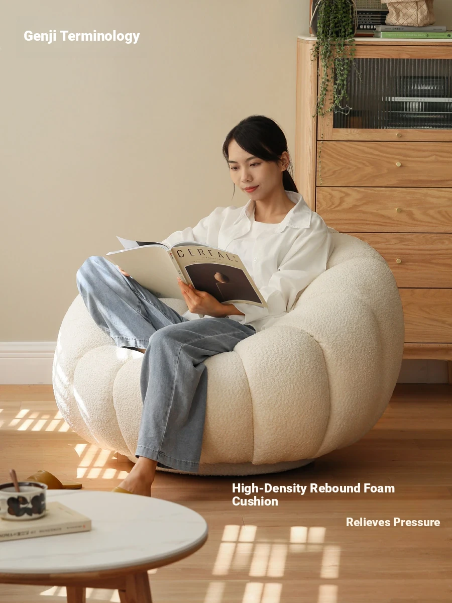 Genji Mu Yu White Lamb Fleece Pumpkin Chair – Cozy Single Sofa for Living Room, Balcony, and Bedroom – Perfect Lazy Chair for Relaxation and Comfort