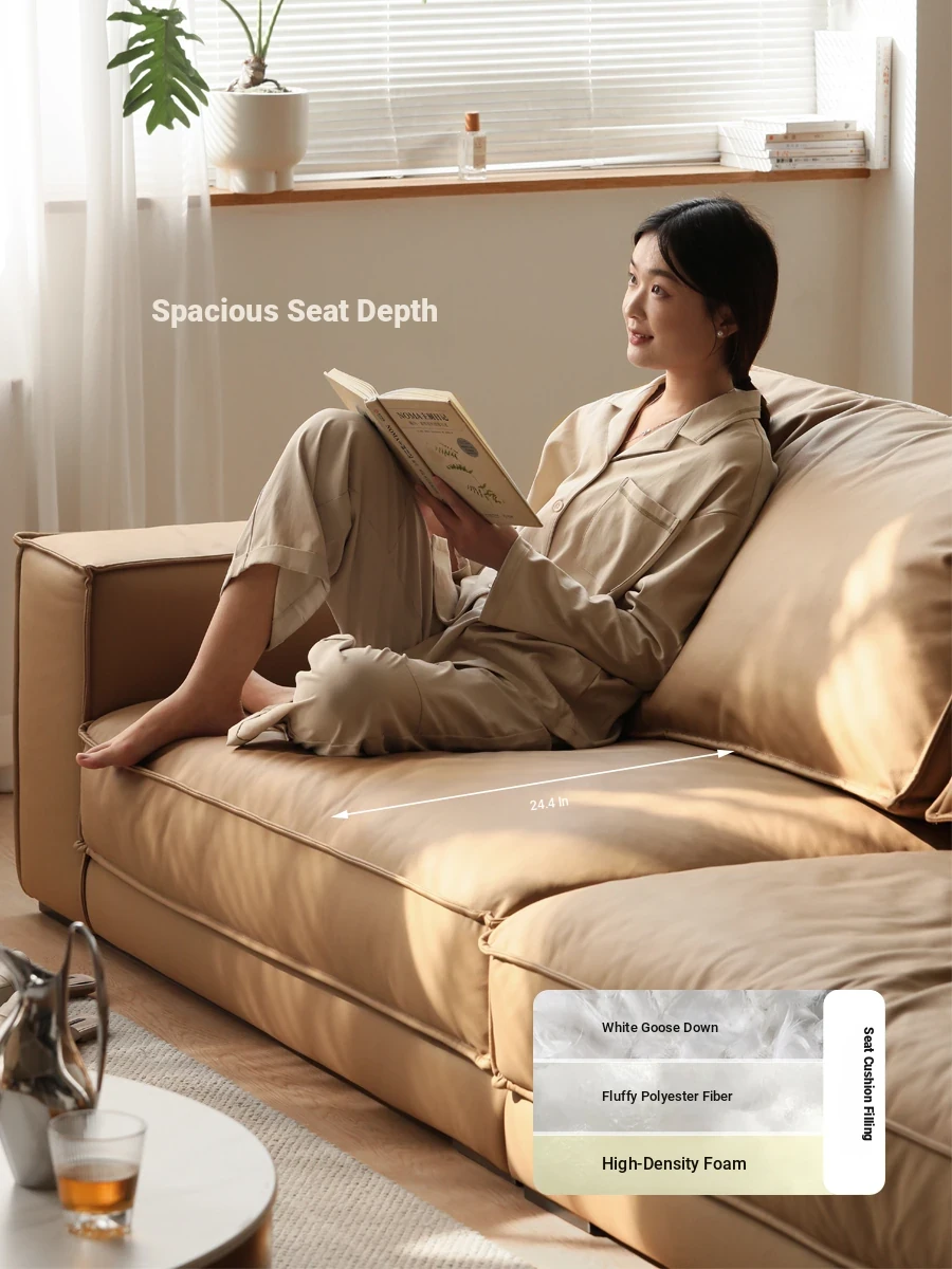 Genji Muyu Modern Minimalist Tech Fabric Square Down Sofa - Stylish and Cozy Upholstered Couch for Your Living Room – Perfect for a Touch of Luxury in Everyday Spaces