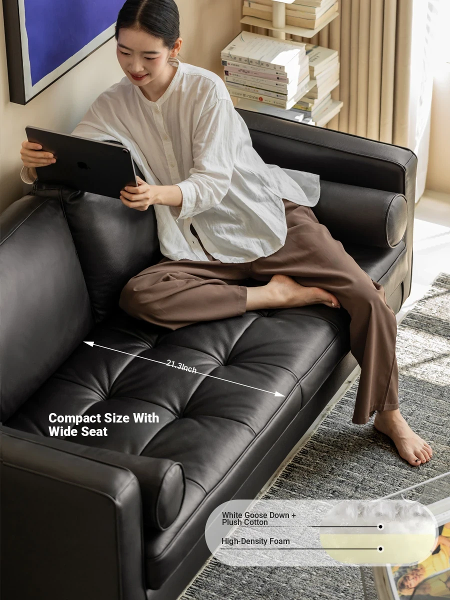 Genji Mu Yu Genuine Leather Sofa - Italian Minimalist Top-Grain Leather Straight Sofa for Small Living Rooms - Elegant Black Leather Design