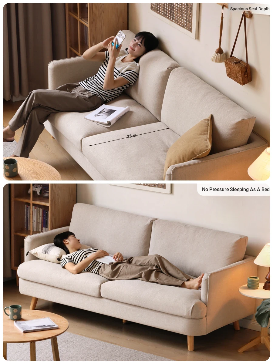 Genji Mu Yu Modern Minimalist Fabric Sofa — Stylish 3-Seater Couch for Small Living Spaces, Removable and Washable Cover, Perfect for Your Cozy Home