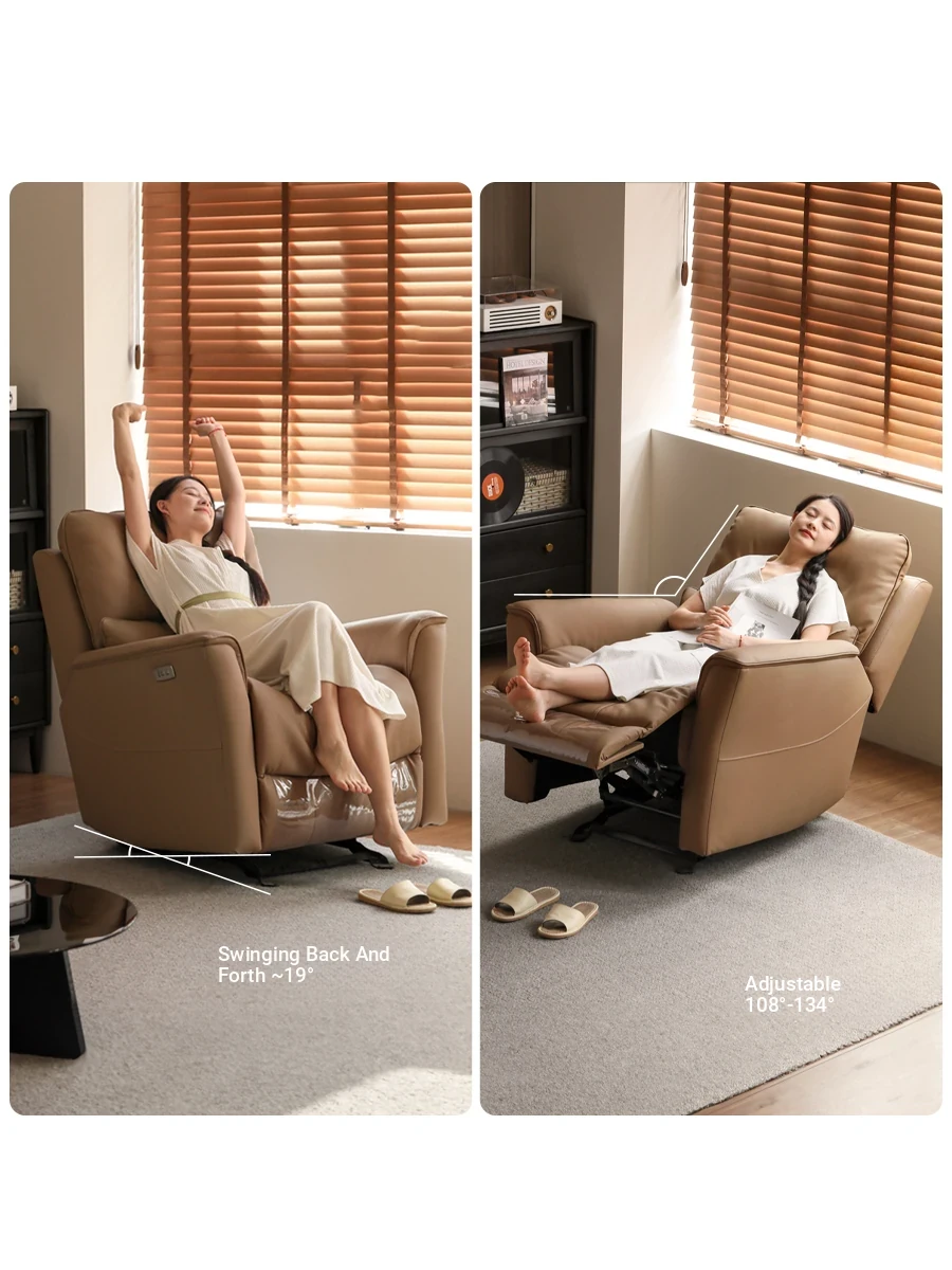 Genji MuYu Genuine Leather Sofa Chair - Modern Minimalist Balcony Functional Chair for Small Living Rooms, Electric Recliner for Ultimate Comfort