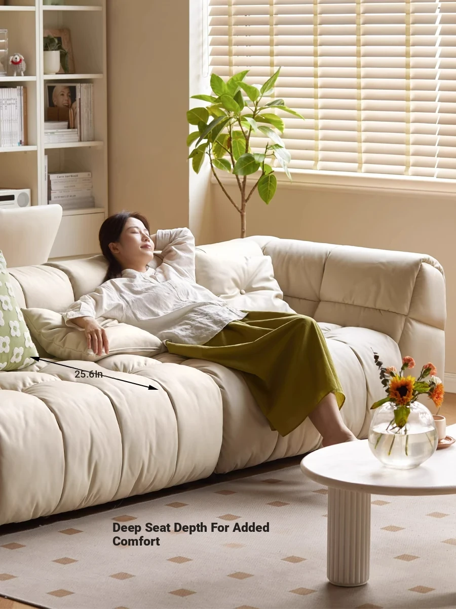 Genji Mu Yu Tech Fabric Cream Sofa - Modern Square Couch for Small Spaces - Cozy White Marshmallow Design for a Chic Living Room