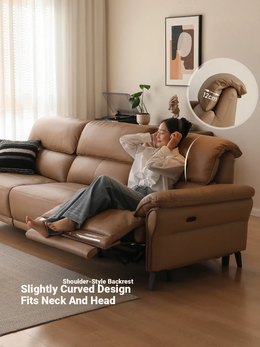 Genji Wood Genuine Leather Wall-Free Sofa - Modern Minimalist Design, Top-Grade Cowhide, Multifunctional Electric Recliner for Stylish Living Rooms
