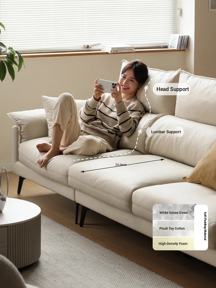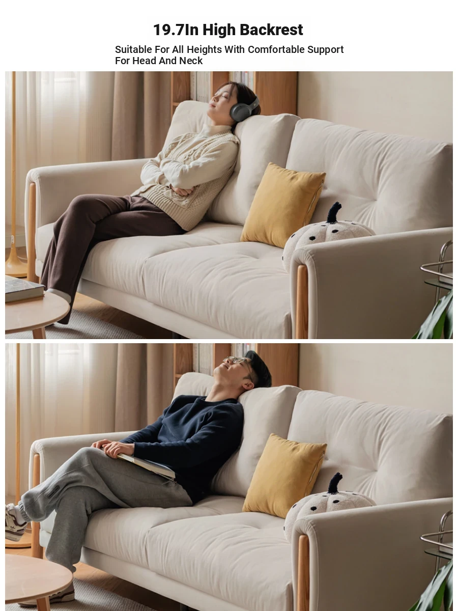 Genjie Mu Yu White Cream Fabric Sofa for Living Room – Stylish Solid Wood High-Back Sofa for Small Spaces, Perfect for Modern Aesthetics and Comfort.