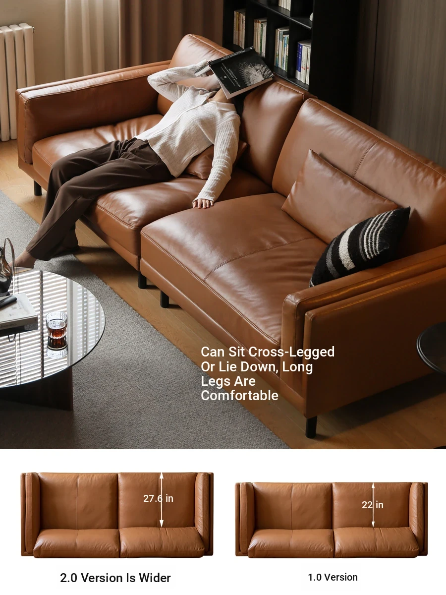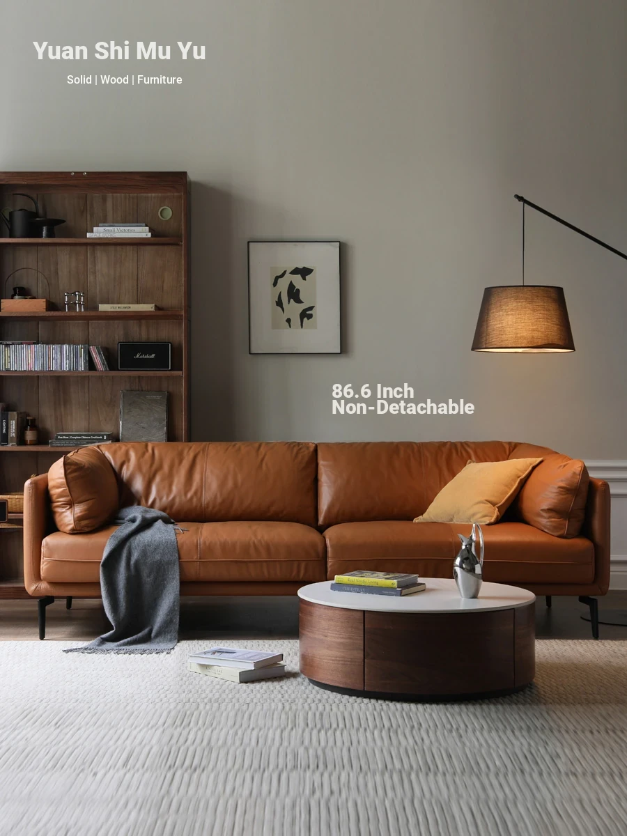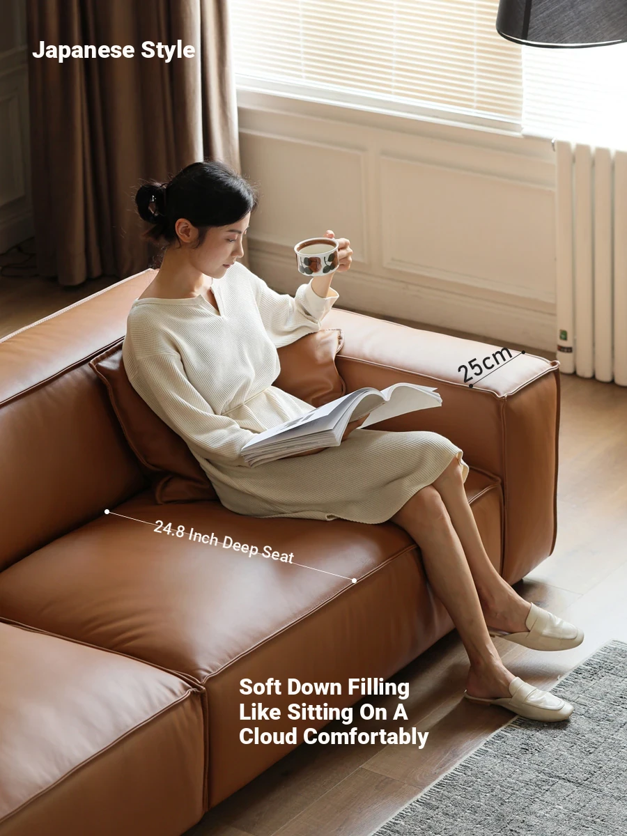 Genji Wood Authentic Leather Sofa: Modern Minimalist Top-Grain Leather and Down Cushions for a Versatile Living Room Electric Sofa. Perfect Comfort and Style for Your Home!
