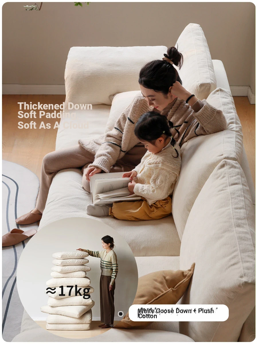 Genji Mu Yu White Cream Fabric Sofa - Cozy 3-Seater Couch for Small Living Rooms, Perfect for Modern Homes with Luxurious Down Filling