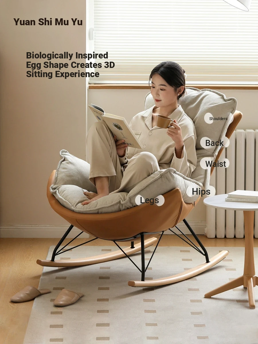Genji Mu Yu Vintage Fabric Rocking Chair - Retro Lazy Sofa for Living Room, Balcony Egg Shell Chair, Mid-Century Modern Single Recliner for Relaxation.