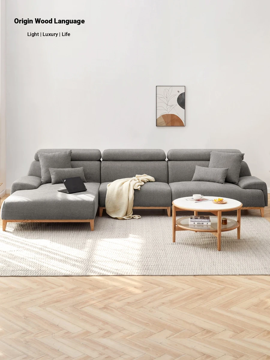 "Genji Mu Yu Modern Minimalist High-Back Corner Fabric Sofa – Stylish Upholstered Sofa for Large Living Rooms, Crafted with Solid Wood for Durability and Comfort"
