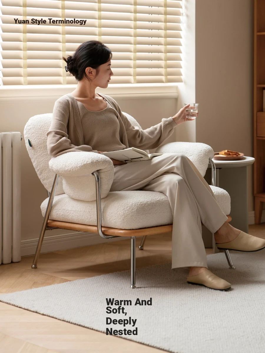 Genji Mu Yu Modern Minimalist Fabric Armchair - Stylish Retro Single Chair for Small Living Spaces, Perfect for Your Cozy Living Room