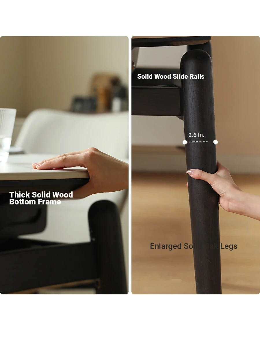 Genji Mu Yu Solid Wood Light Luxury Dining Table – Nordic Style Oak Table with Modern Minimalist Design & Black Stone Top, Perfect for Contemporary Dining Spaces.