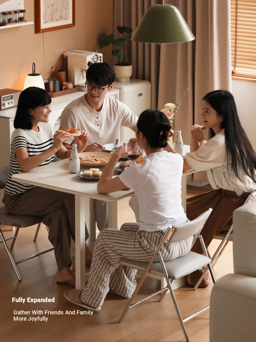 Genji Mu Yu Solid Wood Rock Slab Dining Table – Space-Saving Foldable Creamy Minimalist Square Table for Small Kitchens and Dining Rooms