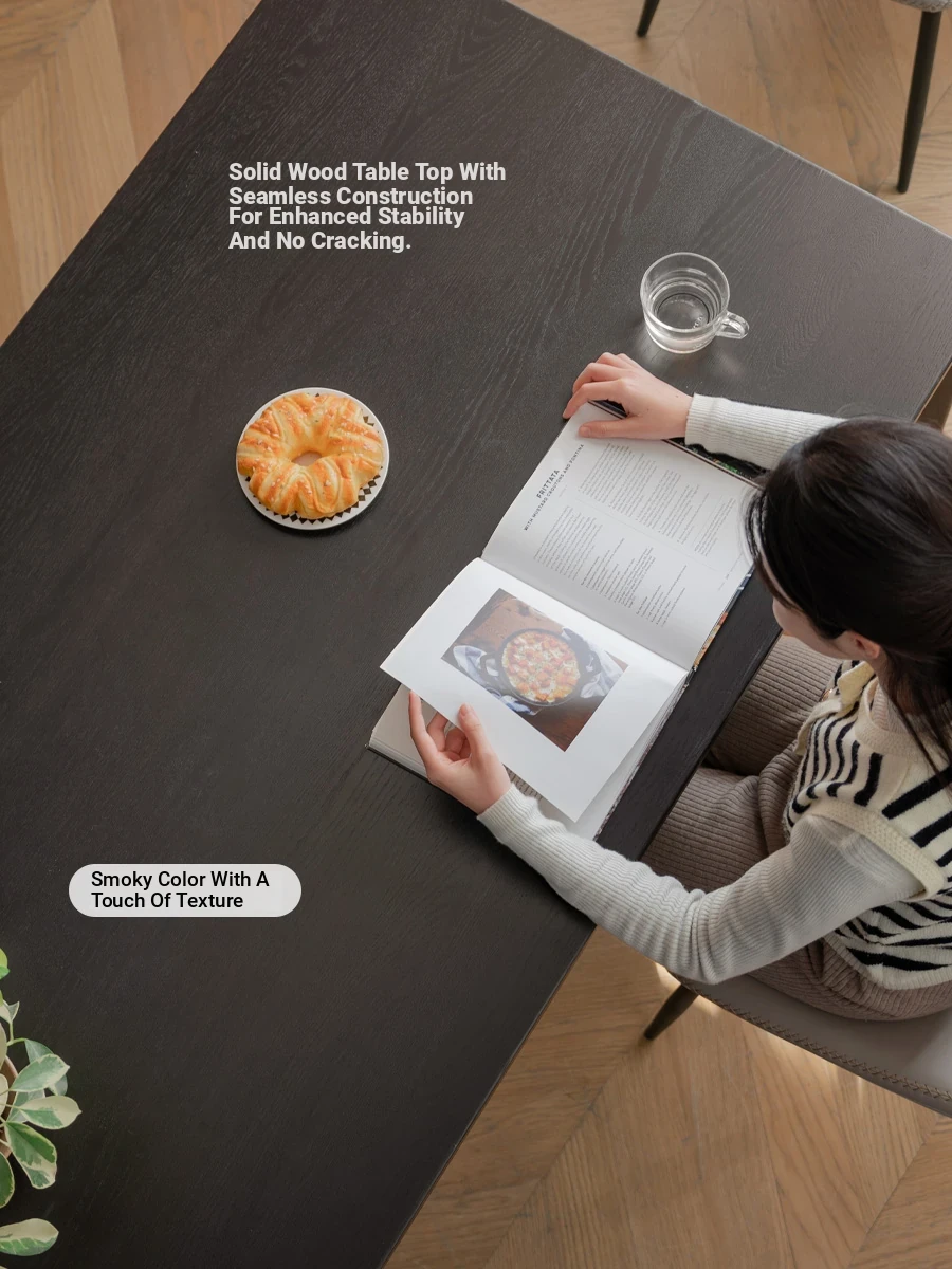 Genji Mu Yu Nordic Style Solid Wood Dining Table - Elegant Black Oak Long Table for Home Use, Perfect for Dining Rooms and Family Gatherings, Stylish and Functional Design