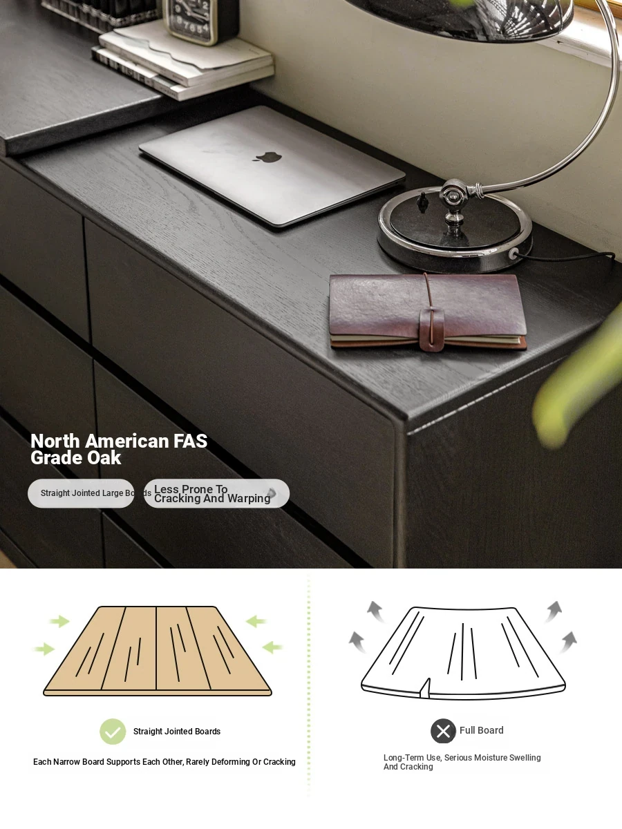Genji MuYu Vintage Black Makeup Vanity Storage Cabinet - Solid Wood Oak Large Capacity Desk for Bedroom and Beauty Routine
