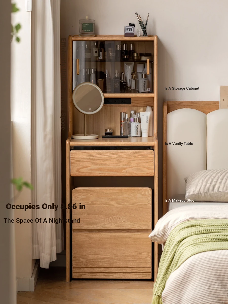 Genji Muju Solid Wood Vanity Table & Storage Cabinet – Modern Minimalist Bedroom Makeup Desk in Oak for Small Spaces, Perfect for Stylish Decor and Organized Living