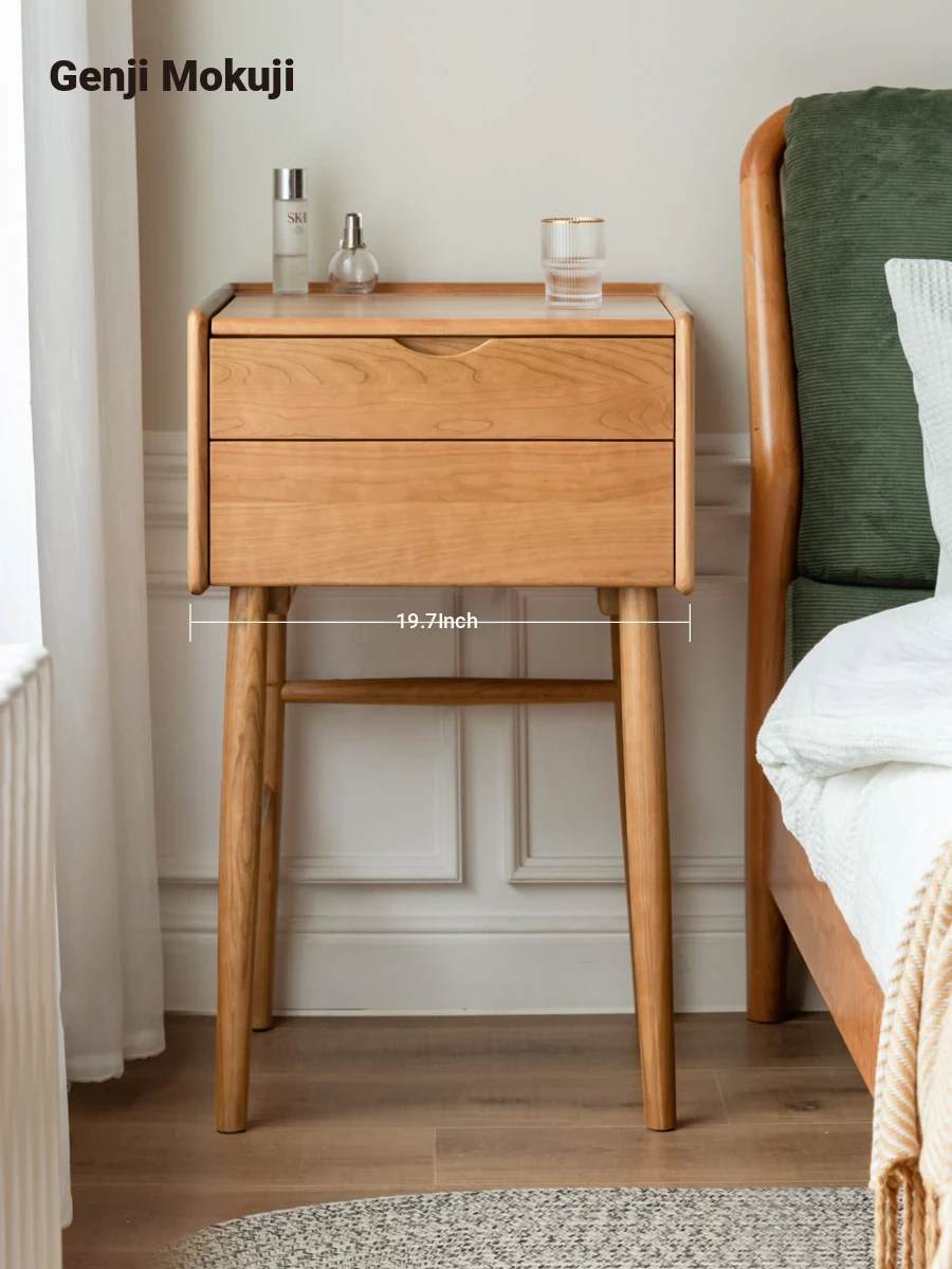 Genji Wood Solid Wood Makeup Vanity Table - Compact and Multi-Functional Cherry Wood Design for Small Bedrooms, Ideal for Modern Living Spaces