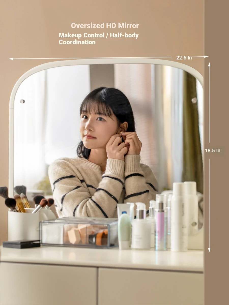 Genji Muju Solid Wood Makeup Vanity - Creamy Breeze Style, Compact Modern Simple White Dressing Table with Storage for Your Bedroom